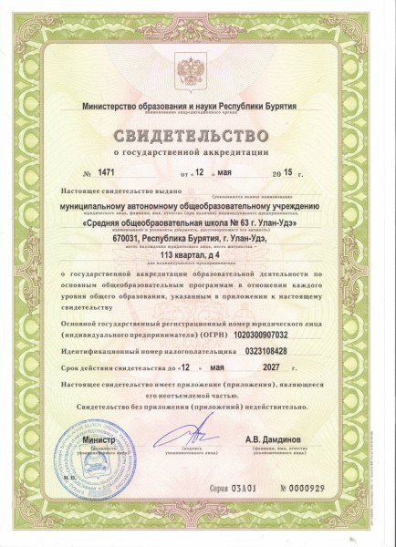 | Сокращенное наименование образовательной организации* | МАОУ «Средняя общеобразовательная школа № 63 г.Улан-Удэ» |